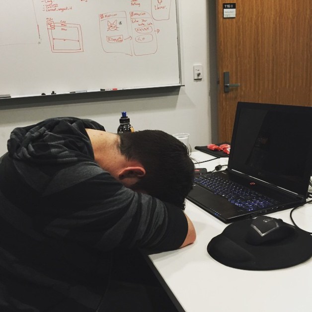 This is what 24 hours of programming does to a guy. #JCU #codeathon #coding #dev Posted on June 28, 2015 by frostfang83 Reply from Instagram: http://ift.tt/1ebytXm